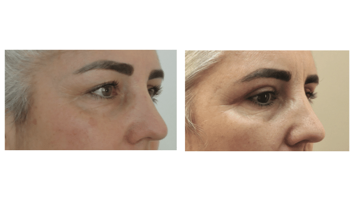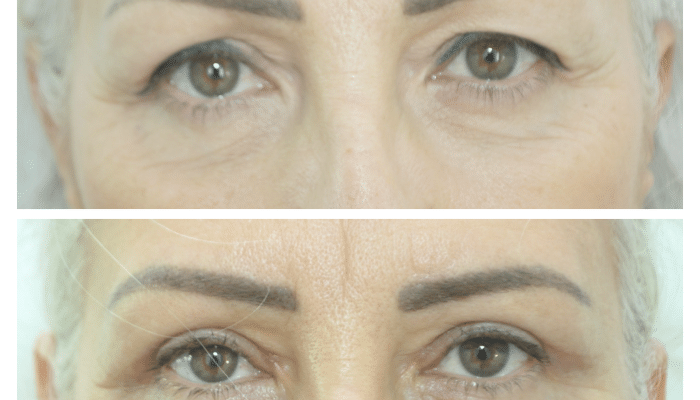 Blépharoplastie des paupières inférieures pouvant être réalisée sous anesthésie locale ou générale vue de face