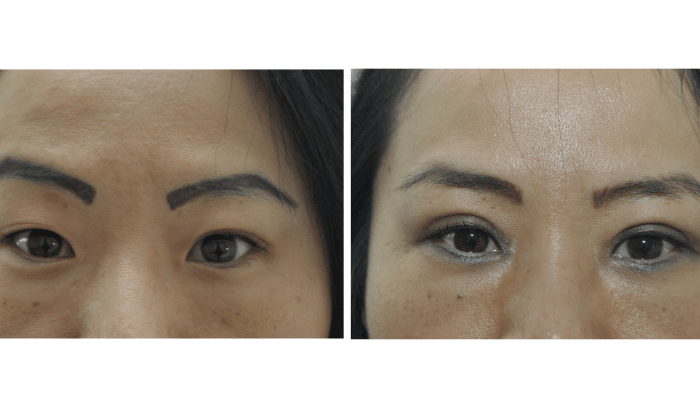 Blépharoplastie des paupières supérieures et inférieures vue de face