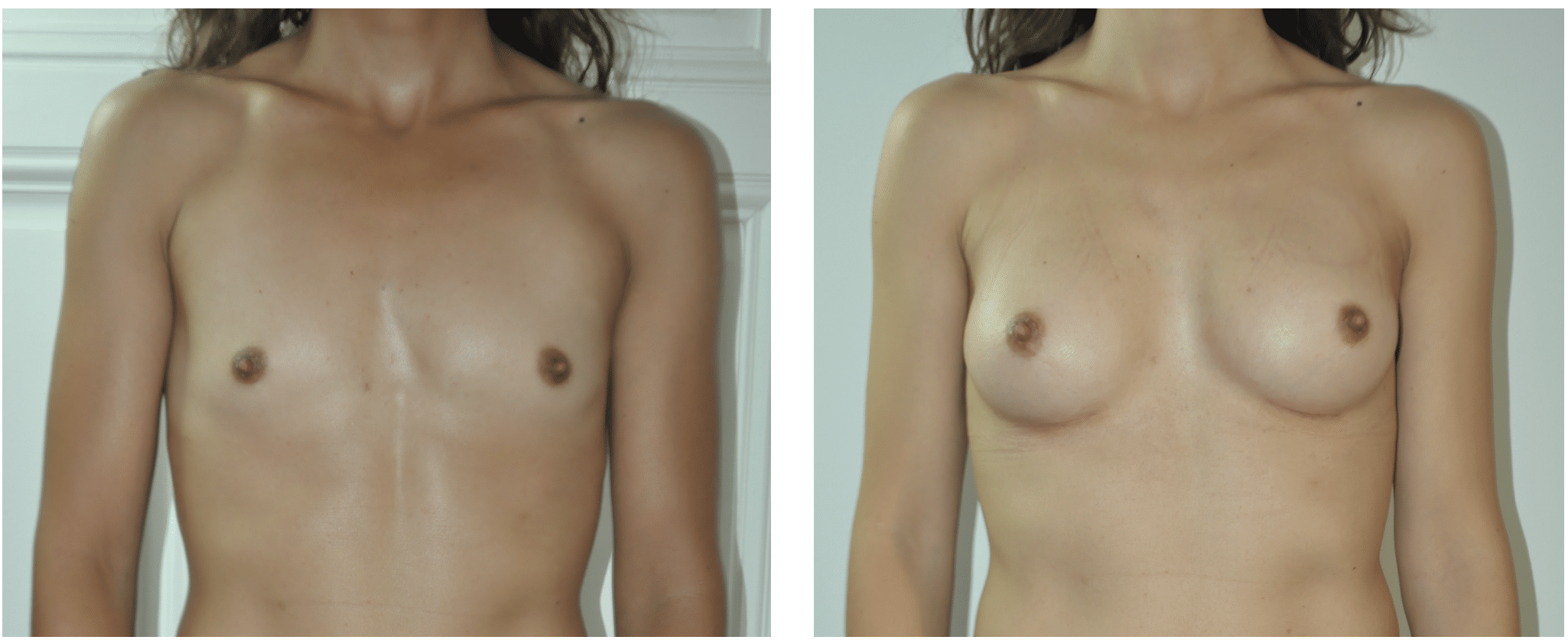 Augmentation mammaire par prothèses anatomiques de 320cc en position rétropectorale par voie sous mammaire