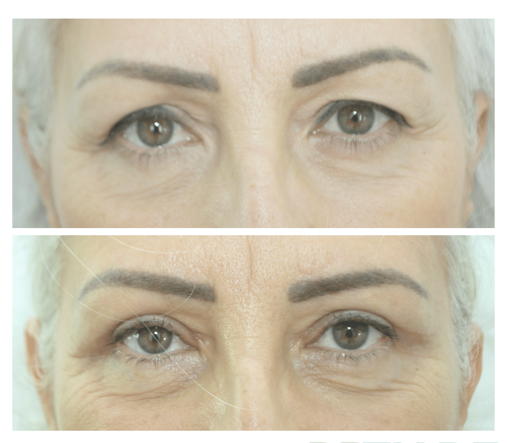 Blépharoplastie des paupières inférieures pouvant être réalisée sous anesthésie locale ou générale vue de face